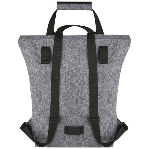 Water-resistant roll-top bike bag made from GRS certified recycled materials. It features a padded 15″ laptop compartment, multiple organisational pockets, adjustable hook & loop closure for easy fitting onto a variety of bikes, and reflective piping for visibility. The GRS recycled materials include the main fabric, lining, webbing, and zips. Capacity: 20 litres. PVC free.