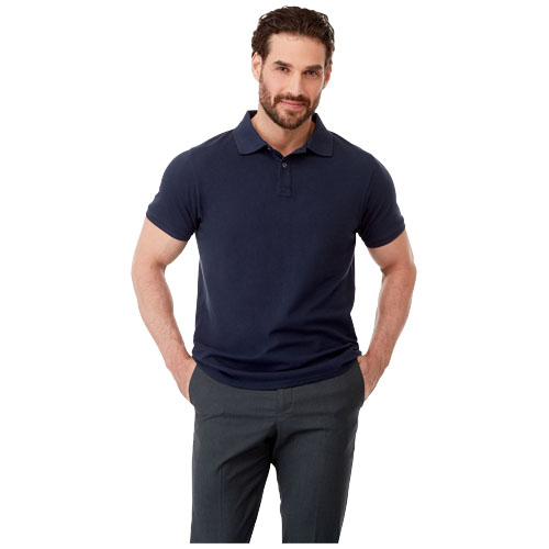 The Beryl short sleeve men’s polo is made of 220 g/m² 70% cotton blended with 30% recycled polyester, making it a more sustainable option suitable for a variety of occasions and activities. The flat knit rib cuffs add sophistication and maintain the polo’s shape.