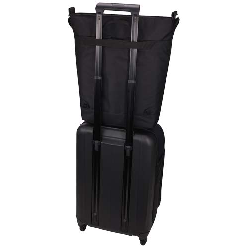 The Case Logic Invigo convertible tote bag has a refined, elegant design with thoughtful organisational features. It is made with 100% recycled 600D polyester exterior and 150D polyester lining. The padded laptop pocket protects a 15.6” laptop and the tablet sleeve can hold a 12.9” tablet. Stow the padded backpack shoulder strap to use the bag as a tote bag, or detach the main shoulder strap to use as a backpack. When using in tote mode, backpack straps stow away cleanly in small designated pocket on back panel. A front panel zip pocket provides easy storage for small accessories and quick access to essential items. In the main compartment there is a designated water bottle storage pocket and on the back panel is a large stash pocket to store even more items. This bag also features a luggage pass-through strap to attach the bag to rolling luggage for effortless travel.