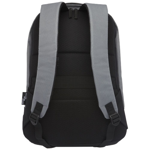 GRS certified backback featuring an open main compartment with organization panel, padded 15″ laptop sleeve, and 2 RFID protection pockets. USB port on the right side to easily connect and charge devices from the interior. Comes with padded shoulder straps, right shoulder strap, hidden zipper pocket, grab handle, and a trolley pass-through. Approximately 15 plastic bottles are recycled to make this bag.