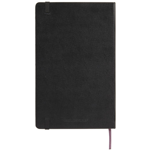 The Moleskine Classic large (13x21cm) hard cover notebook features a cardboard bound cover with rounded corners, acid free paper, a ribbon bookmark and elastic closure. On the first page in case of loss notice with space to jot down a reward for the finder. Attached to the back cover an expandable inner pocket that contains the Moleskine history. The pocket can be used for loose papers and notes. Contains 240 ivory-coloured ruled pages. Available in a wide range of stylish vibrant colours.