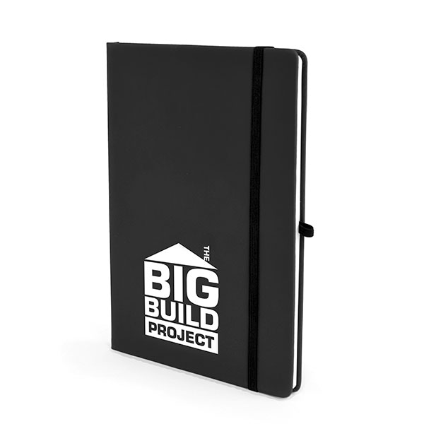 Fitted with elastic closure band and inside back cover pocket