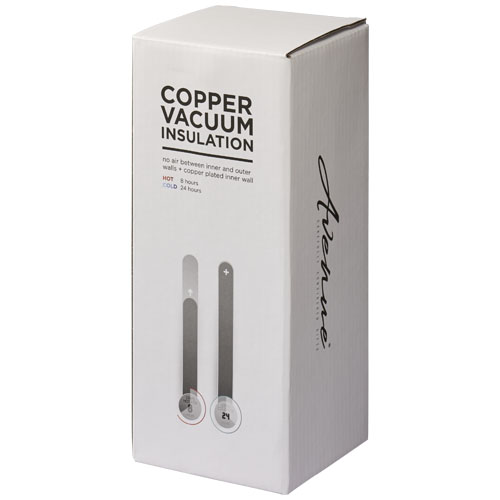 This durable tumbler is ideal for travel, fitting in most cup holders. The lid is leak proof with an easy flip-open seal design. The tumbler is stainless steel double-wall vacuum construction with copper insulation which means it will keep drinks hot for 8 hours and cold for 24 hours. The construction also prevents condensation on the outside of the tumbler. Volume capacity is 500 ml. Presented in an Avenue gift box.