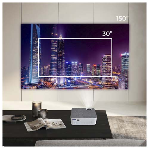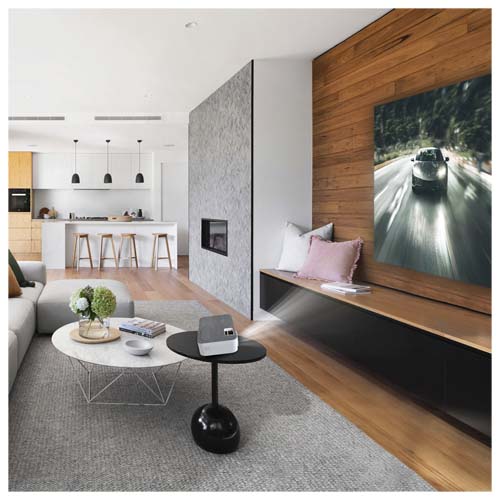 The projector plays back movies with maximum image quality. Supporting 1080P FULL HD, 1080i, 720p, 5761, 480p and 480i via HDMI. Vertical image correction system of +/- 15 degrees. Remote control and 2 speakers included. It’s projects videos, audio, photos and text. real resolution of 1280 x 720. lamp with output of up to 5,000 lumens. White LED with 100 ANSI lumens. Contrast 500:1. projection distance up to 5 meters. Direct connection of all types of players via HDMI. Input: VGA, 2xHDMI, USB2.0, MicroSD, Aux in and AV IN.