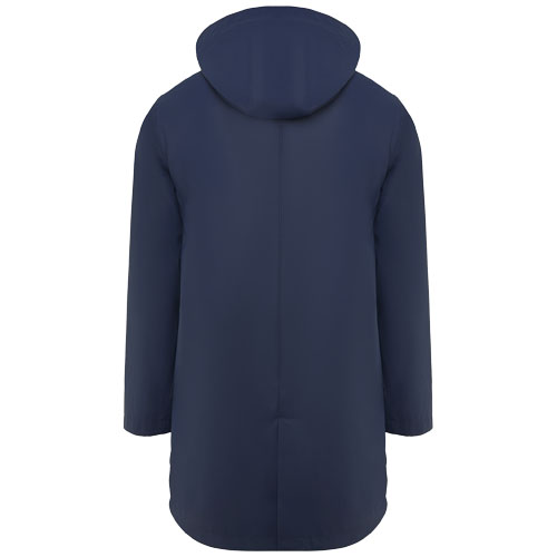 Waterproof raincoat. Hood with peak. Heat-sealed zips and seams. Contrasting details in black. Two side pockets with zip. Slit on back hem. Removable label. Waterproof. The model is 185 cm and is wearing size M.