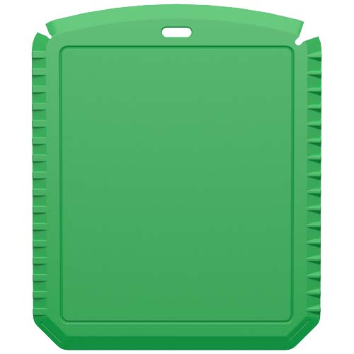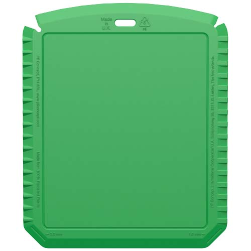 Compact and convenient, the Thrym rectangular recycled plastic ice scraper is the perfect tool for use in icy conditions. Made from 100% recycled plastic, its durable construction ensures effective removal of ice and frost. Features a flat edge, a serrated edge, and a windscreen wiper blade cleaner.
